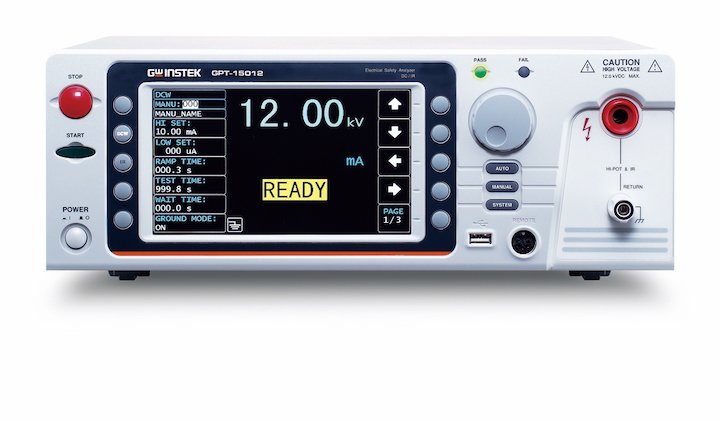 GW INSTEK introduces the high DC voltage model of safety analyzer GPT-15012, which is the safety analyzer to comply with IEC 61010-2-034 (Safety requirement for electrical requirement for measurement, control and laboratory use – particular requirements for measurement equipment for insulation resistance and test equipment for electric strength).Due to the high voltage output characteristics of GPT-15012, it is particularly suitable for the safety testing requirements of various high-voltage insulation products, such as energy storage/photovoltaic components, high-voltage relays, wires and cables, etc.