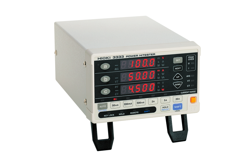 HIOKI benchtop power meters and power analyzers are best in class power measuring instruments for measuring single to three-phase lines with a high degree of precision and accuracy. The 3333 is single-phase, direct input AC power meters designed to precisely measure the power consumption of electrical household appliances on production lines.