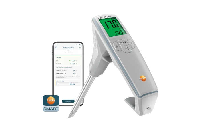 The new testo 270 BT frying oil tester enables even easier, faster & more reliable monitoring of frying oil quality thanks to its connection to the testo Smart App. With this new version, you can keep an even better eye on the TPM values of your frying oil and display and analyze all relevant data directly on your mobile device.
